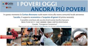 In questo momento la Caritas diocesana vuole essere vicina alla nostra comunità locale attraverso l’ascolto, il supporto economico e l’acquisto di generi di prima necessità. È possibile contribuire alla raccolta fondi tramite bonifico bancario: IBAN IT24W 03111 13401 0000000 19866 CARITAS DIOCESANA Causale: “Emergenza Coronavirus” «Rinnovo la mia vicinanza a tutti i malati e a coloro che […]