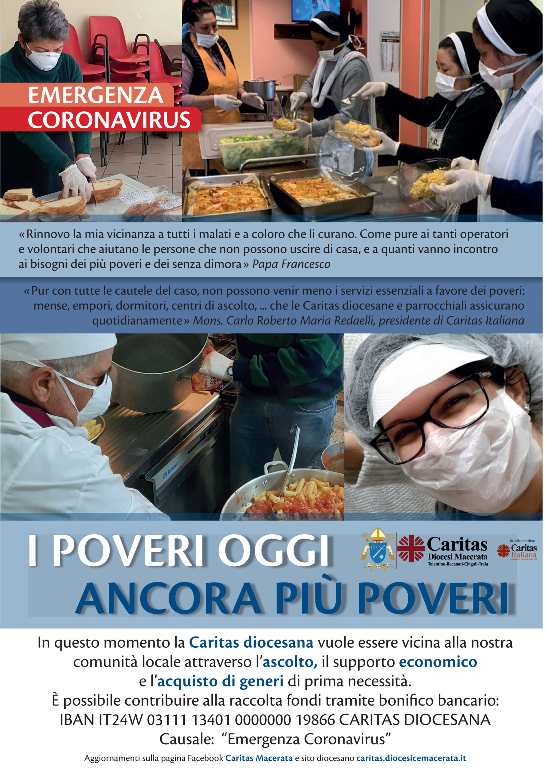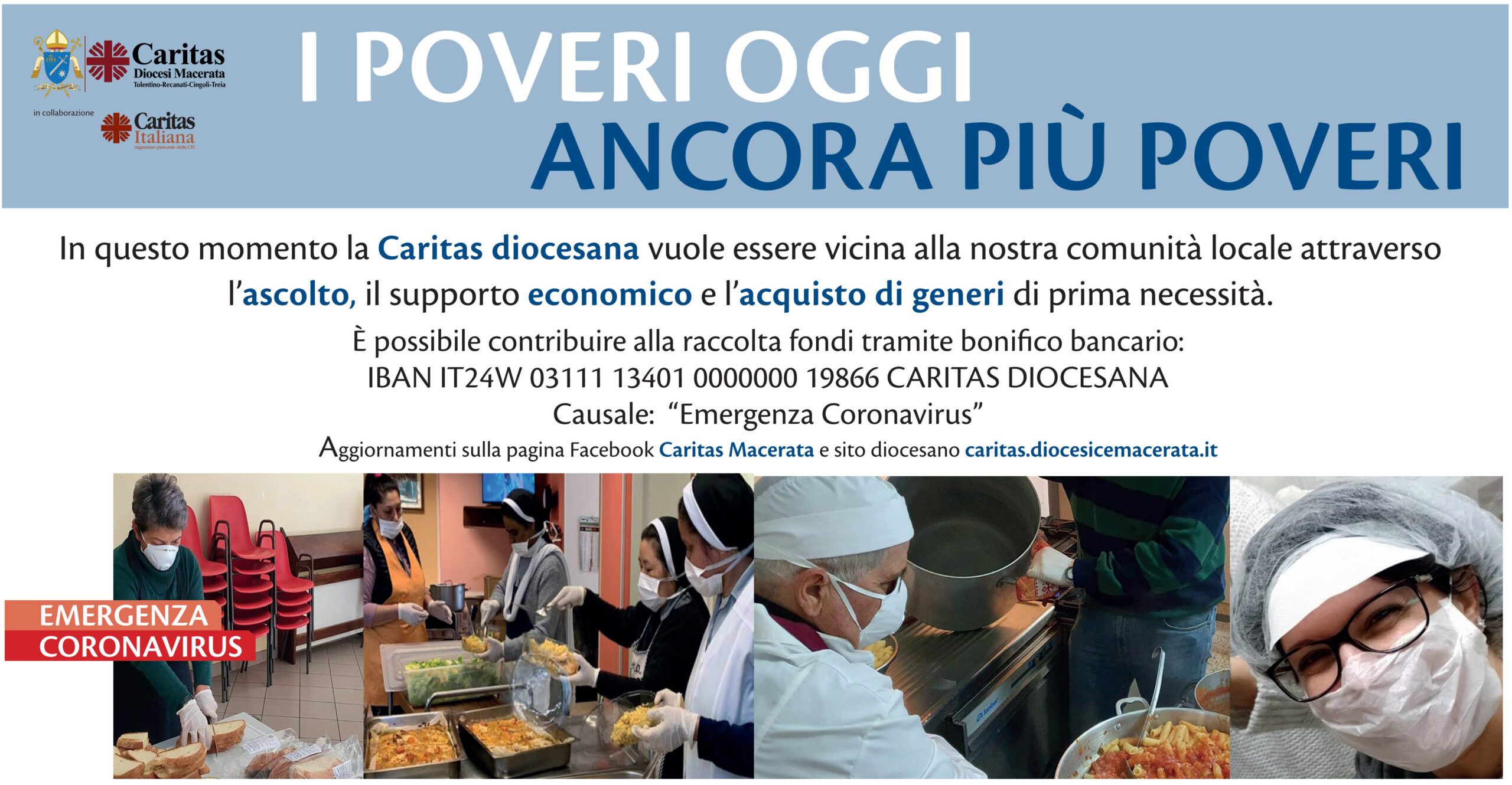In questo momento la Caritas diocesana vuole essere vicina alla nostra comunità locale attraverso l’ascolto, il supporto economico e l’acquisto di generi di prima necessità.