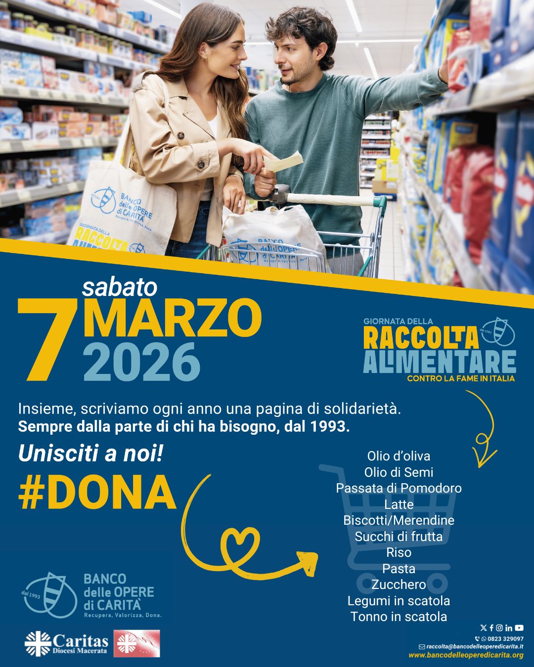 Sabato 7 marzo 2026 si svolgerà la Giornata della Raccolta Alimentare, un’iniziativa di solidarietà promossa dal Banco delle Opere di Carità che ogni anno coinvolge volontari, associazioni e cittadini con l’obiettivo di sostenere chi vive situazioni di difficoltà.